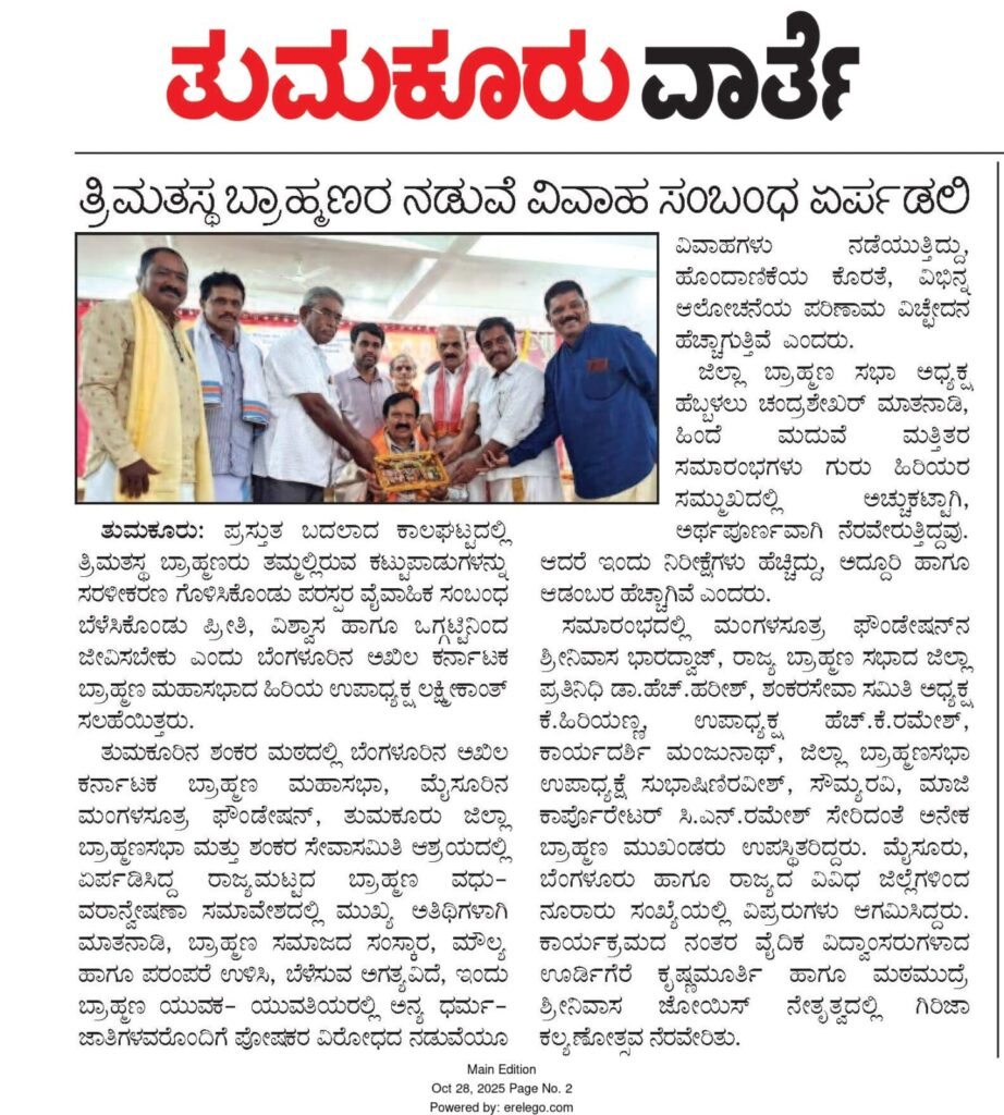 WE AT MANGALSUTRA MATRIMONY ARE ALWAYS DEDICATED TO PROVIDE AUTHENTIC SERVICES ACROSS KARNATAKA AND INDIA. WE HAVE BEEN IN SERVICE SINCE 2013 AND HAVE CONDUCTED 65 MEGA MATRIMONIAL MEETS ACROSS KARNATAKA SUCCESSFULLY ANDHAVE MADE AROUND 800+ MARRIAGES THAT ARE MATCHED FROM OUR SUCCESSFUL MATRIMONY MEETS , WE HAVE AUTHENTIC PROFILES AND ALSO HAVE A VERY AFFORDABLE MEMBERSHIP PLANS SUITABLE FOR ALL CLASS OF PEOPLE, WE ALWAYS MAKE OUR SERVICE TO WELFARE OF BRAHMIN BRIDES AND GROOMS AND ALSO SOCEITY ,HERE ITS MORE OF A SERVICE THAN BUSINESS, MAKE YOUR SEARCH A SUCCESS STORY BY CHOOSING MANGALASUTRA AND WE WILL WISH YOU GET YOUR SUITABLE SOULMATE FOR LIFE , MANGALASUTRA IS TRUST AND AUTHENTICITY , CHOOSE US TO GET SUITABLE AND AUTHENTIC PARTNER FOR LIFE ………